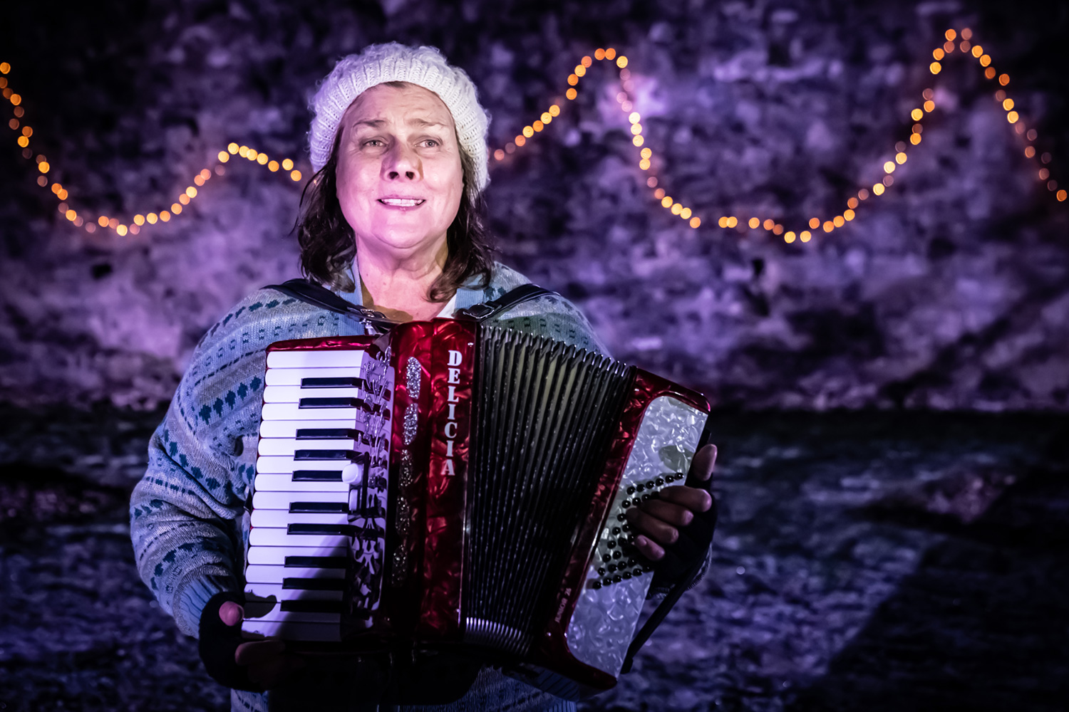 So as Gerda goes off on her journey, the audience are physically going off on the journey with her. Wrap up like you’re going on a winter walk for an hour and come here, where you can have mulled wine and keep moving to keep warm.”